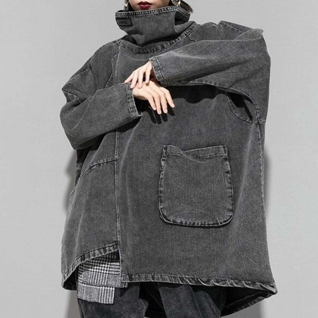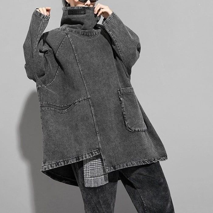 〈Unisex〉Denim Loose High-Neck Shirt【TR3010】