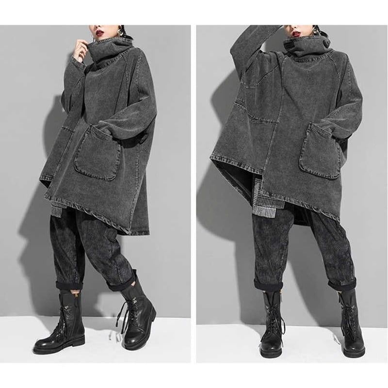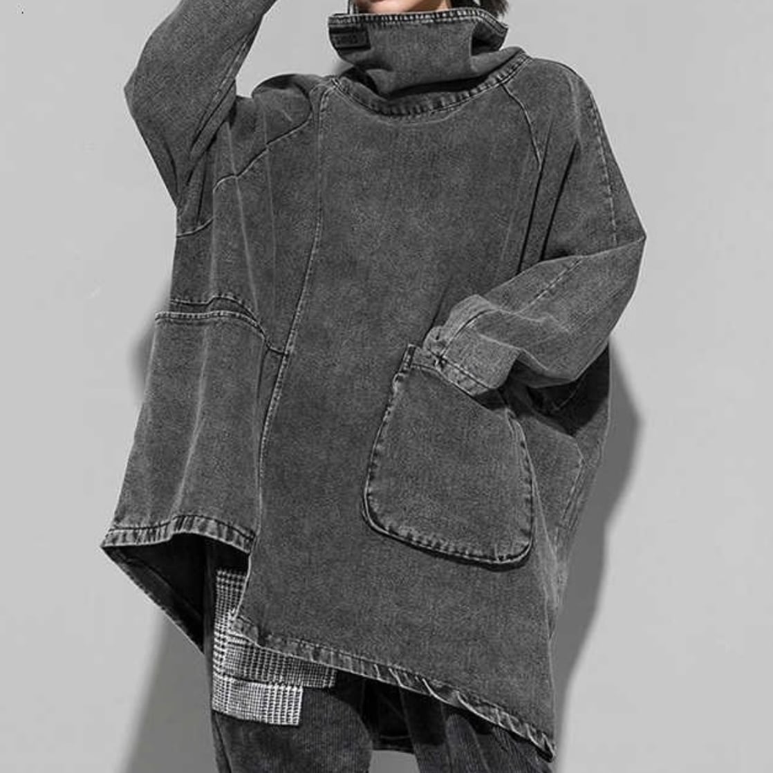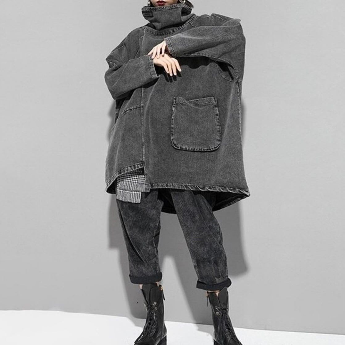 一癖スタイルな至極のハイネックシャツです