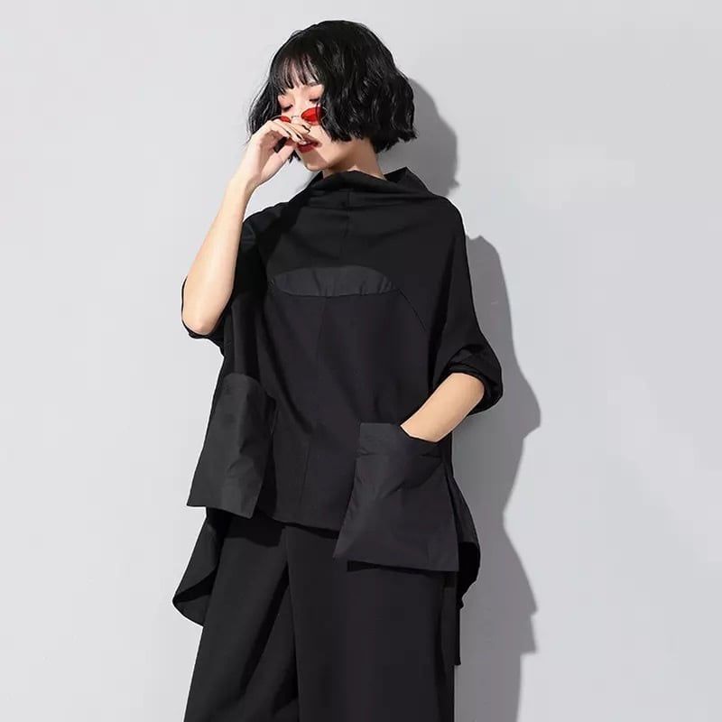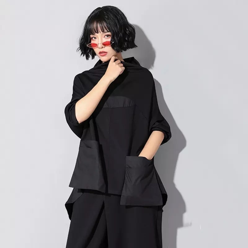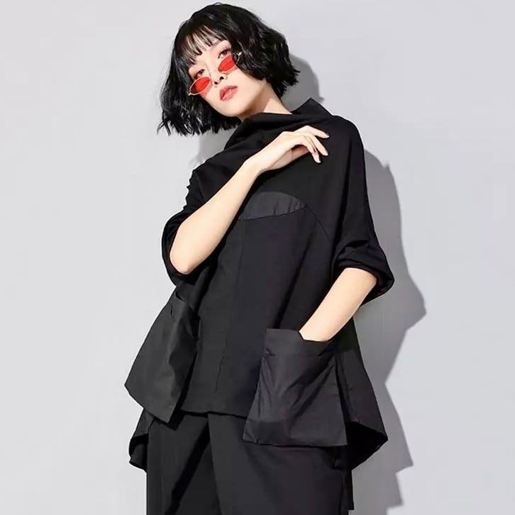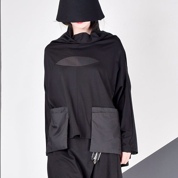 Stand Collar Patchwork T-Shirt【TR1409】