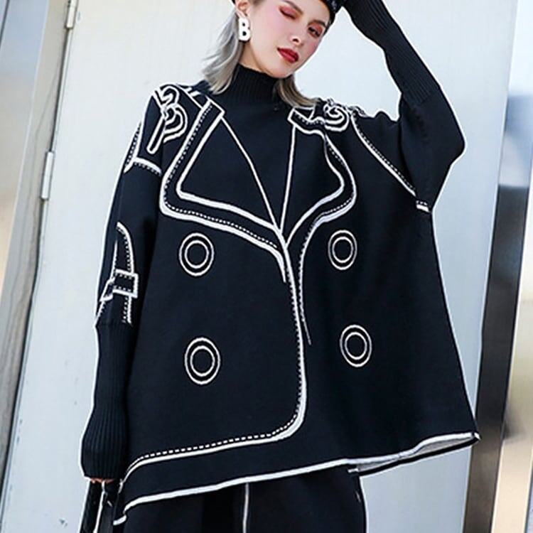Painted High-neck Knit Shirt【TR1334】