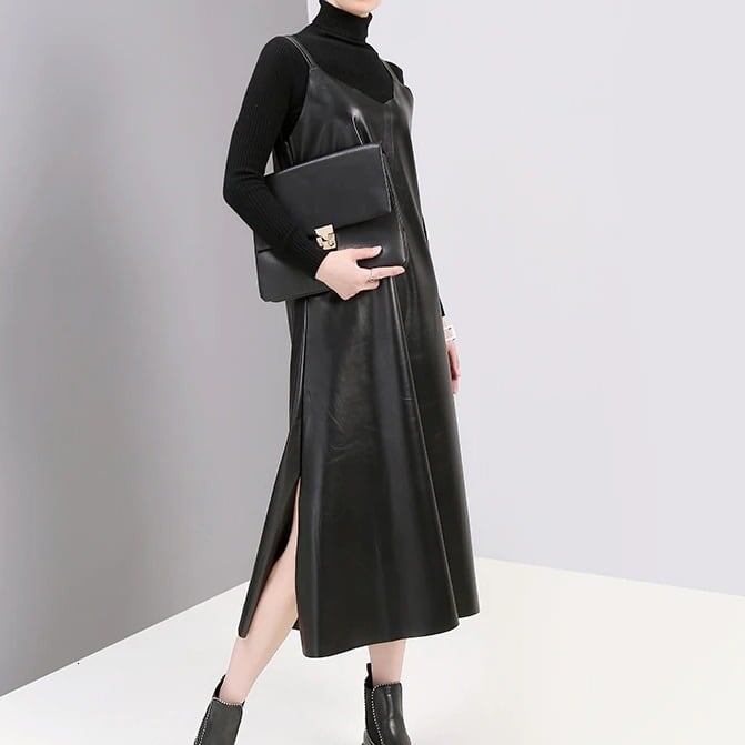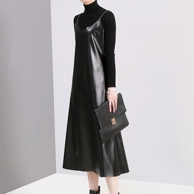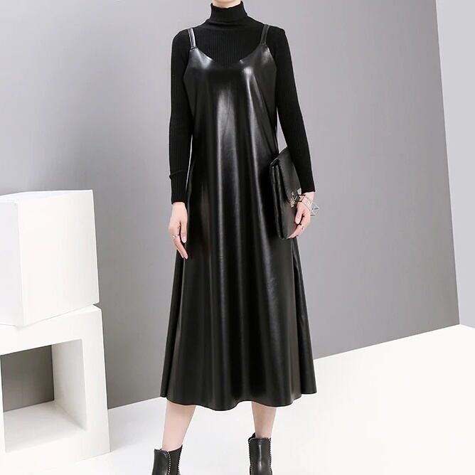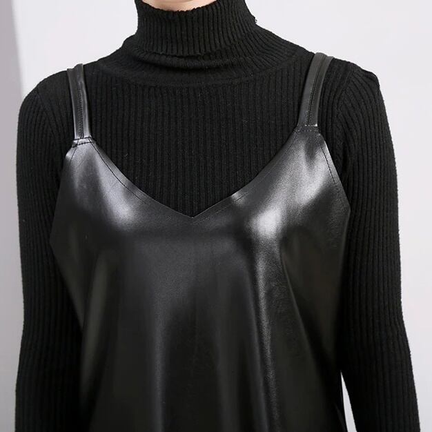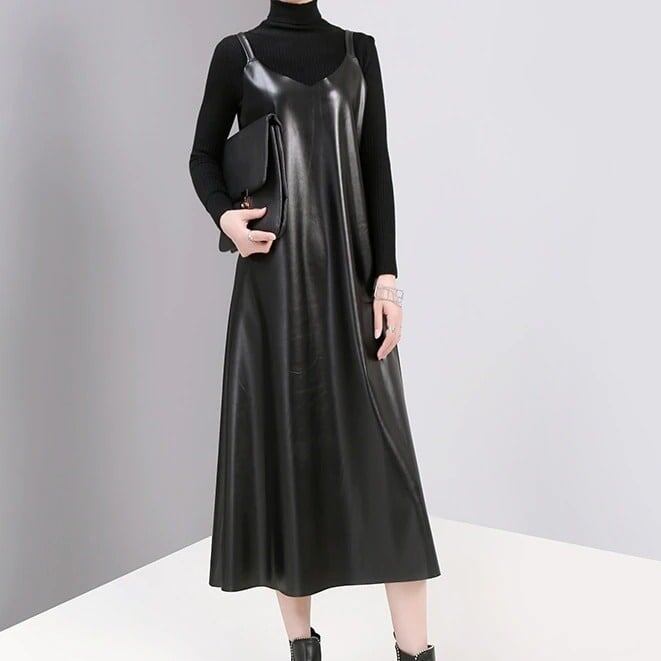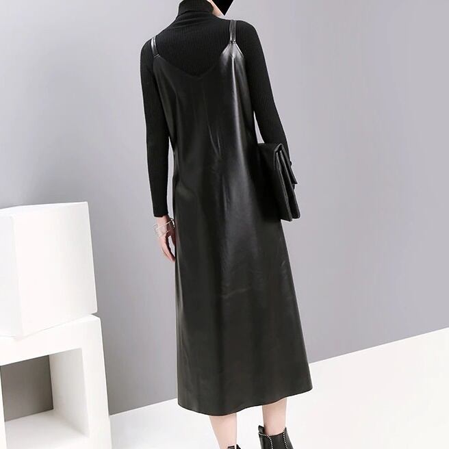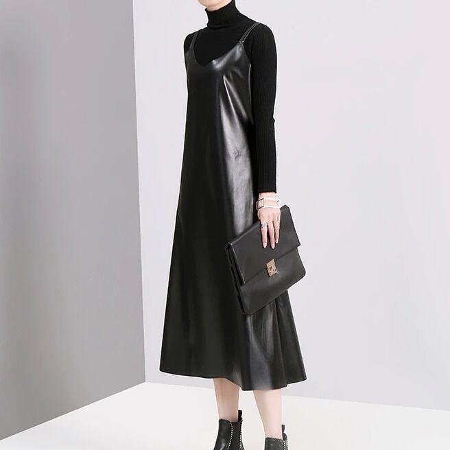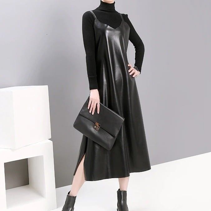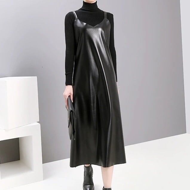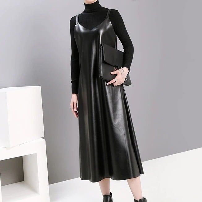 Pu Strap Leather All-in-One Dress【TR1210】