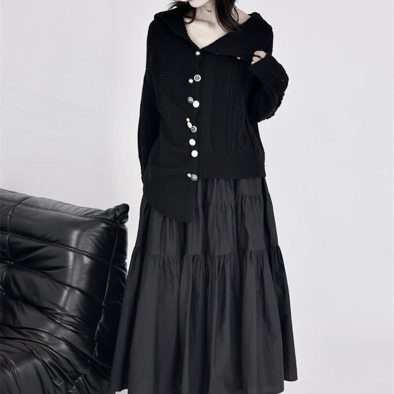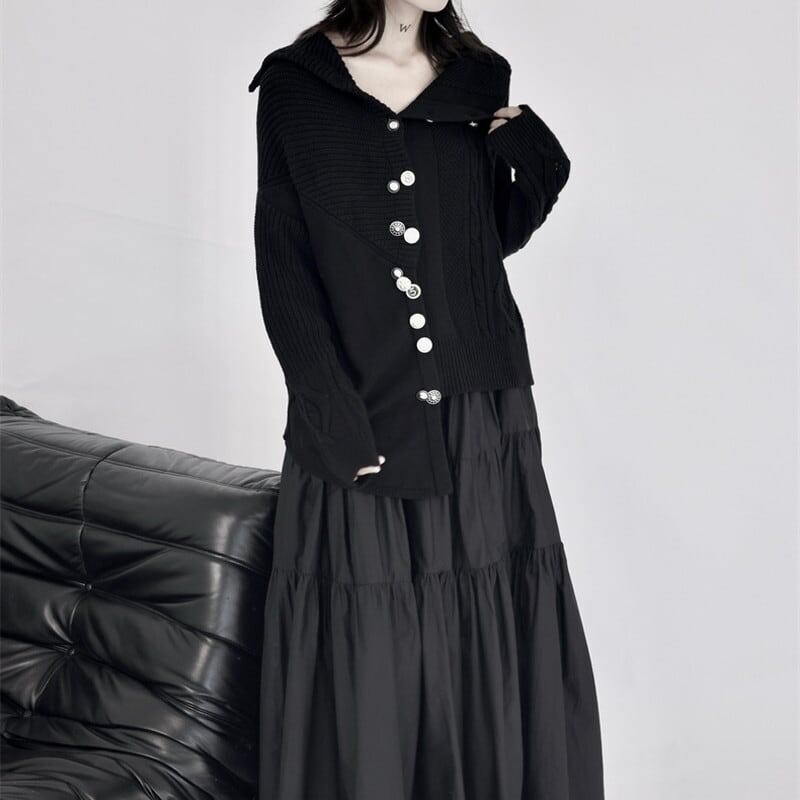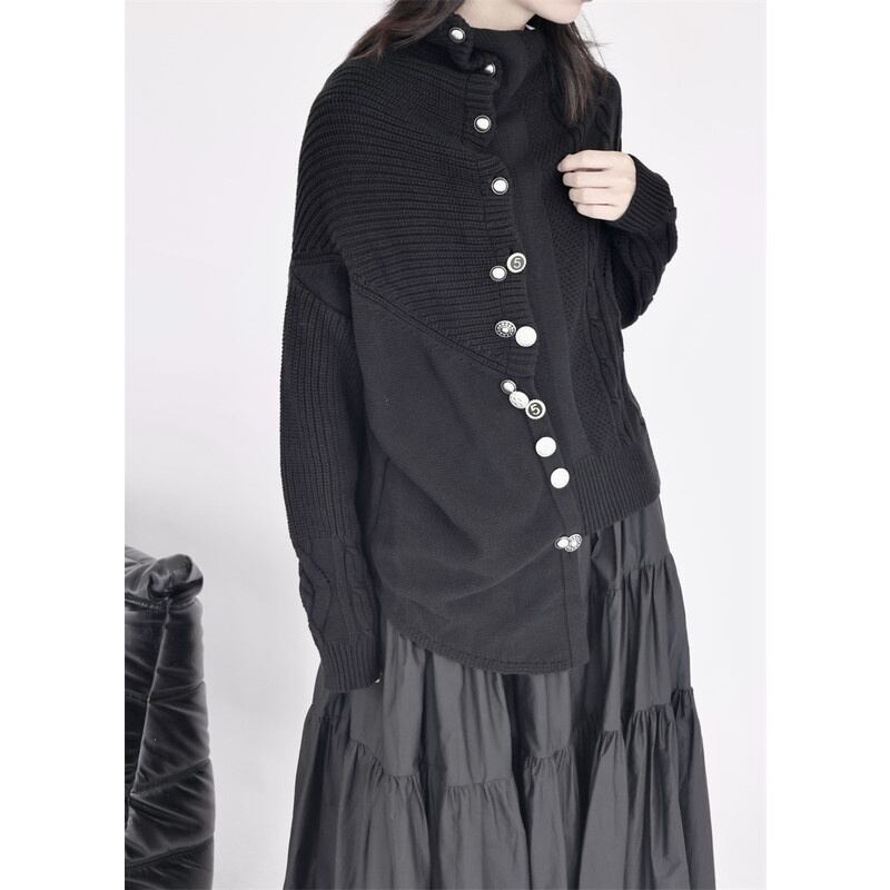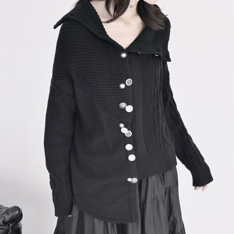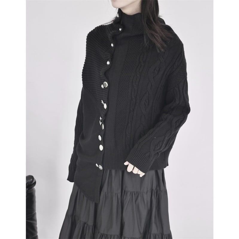 Asymmetry Off-Turtle Knit Jacket【TR3268】