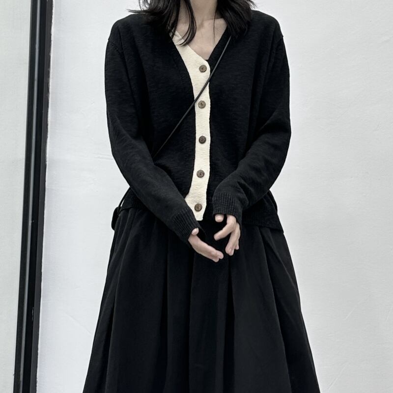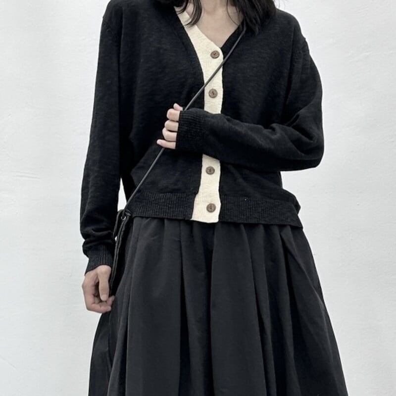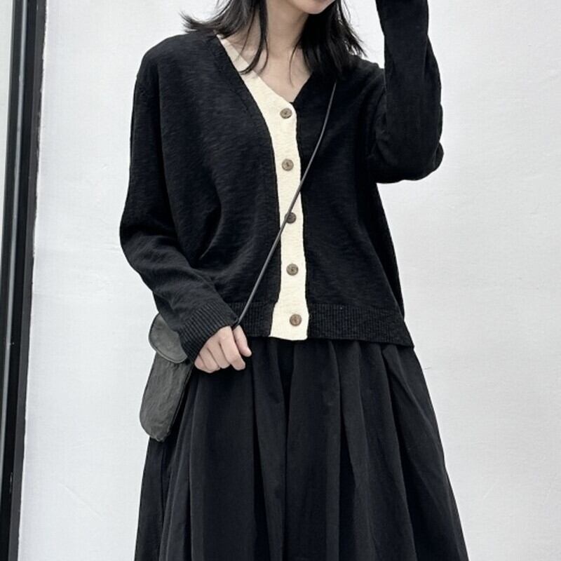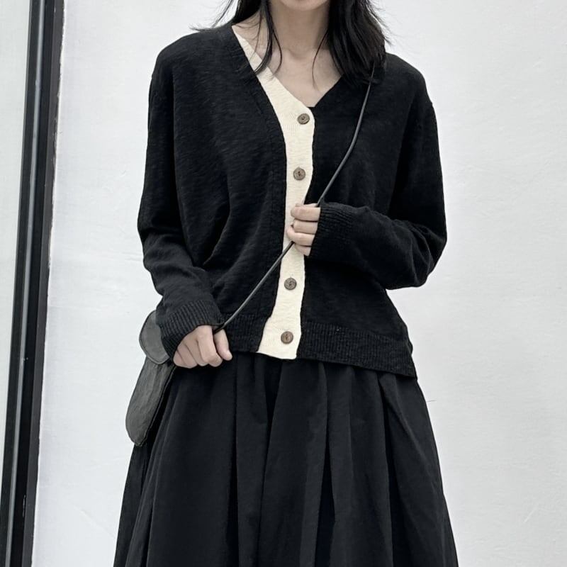 Knit Bi-Color V-Neck Jacket【TR3267】