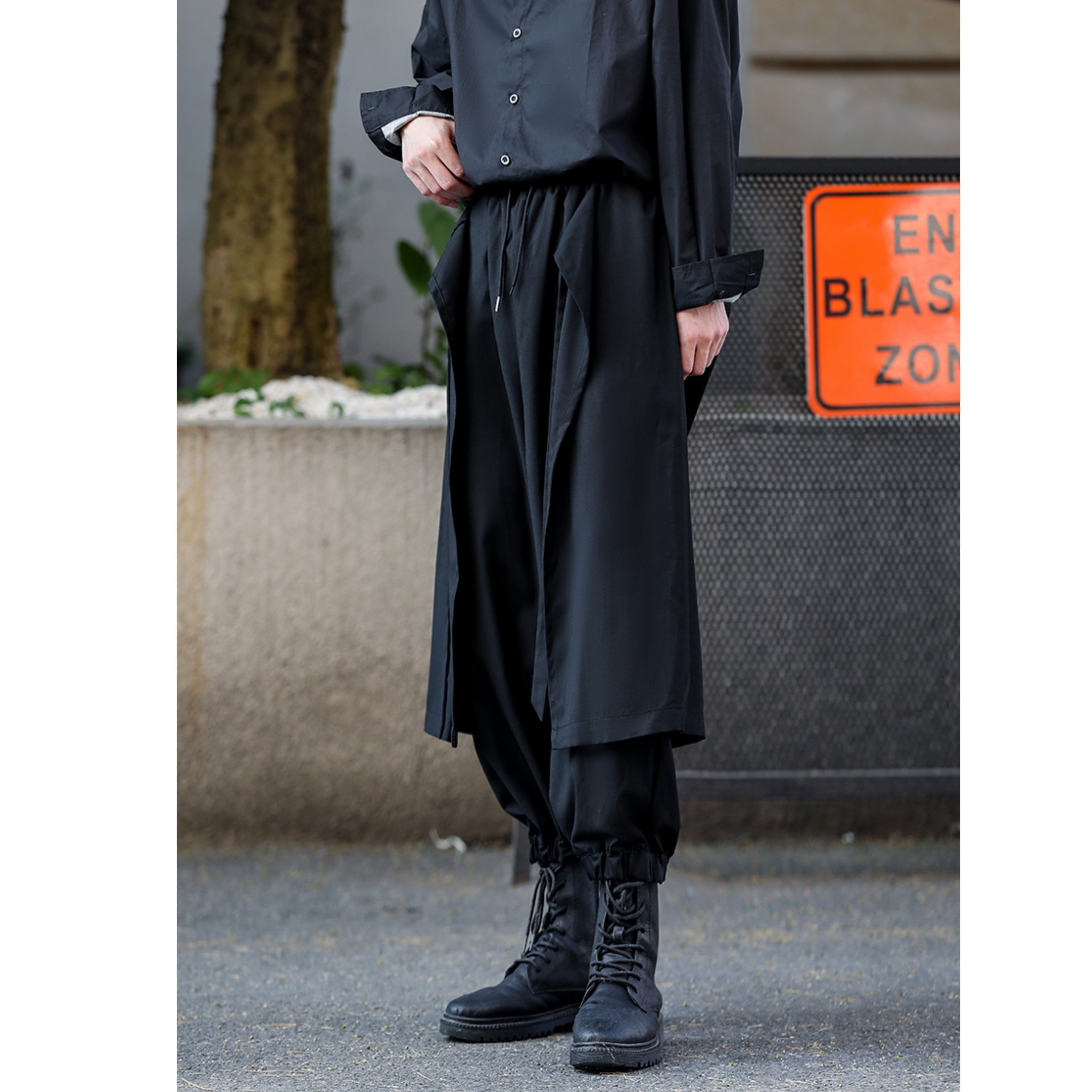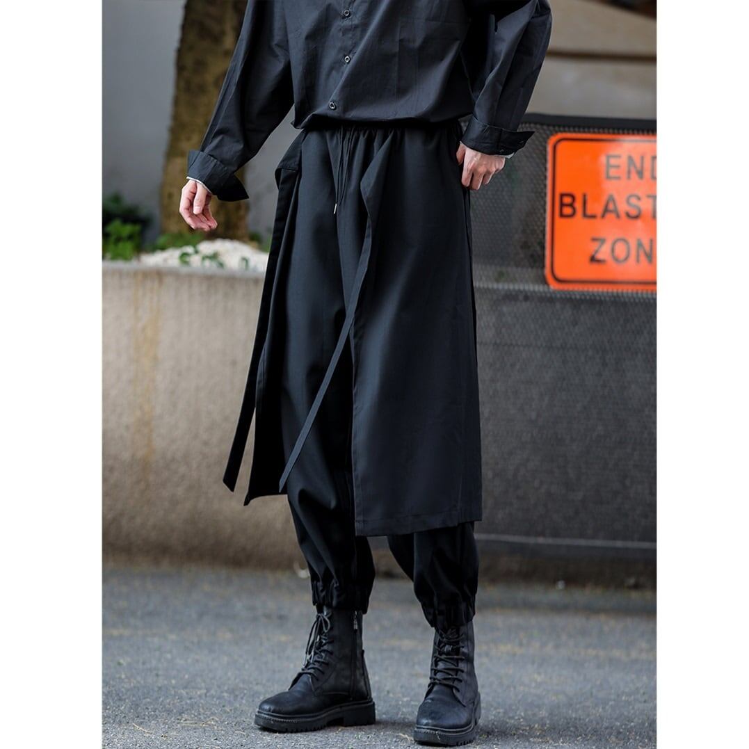 Waist Ribbon Layered-look Pants【TR3278】