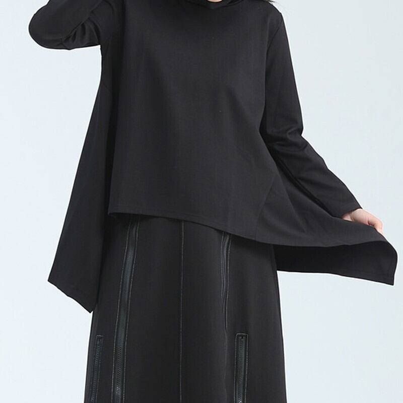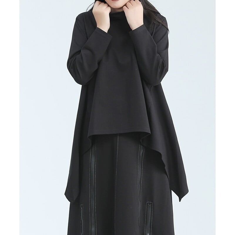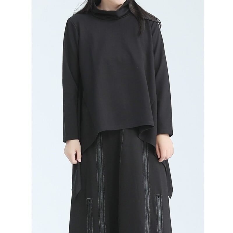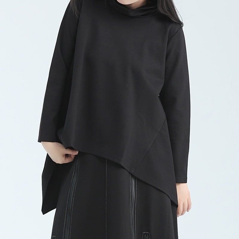 Asymemtry Mock-Neck Flare T-Shirt【TR3150】
