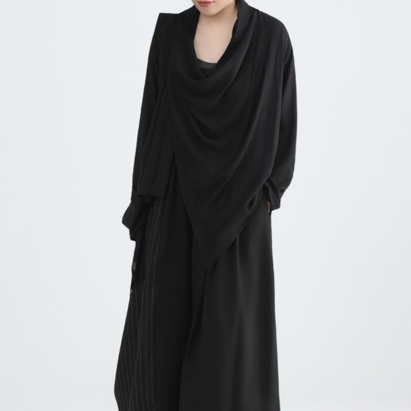 Asymmetry Drape Collared Shirt【TR3132】