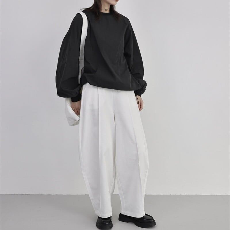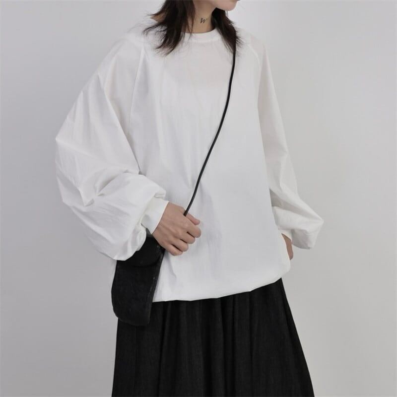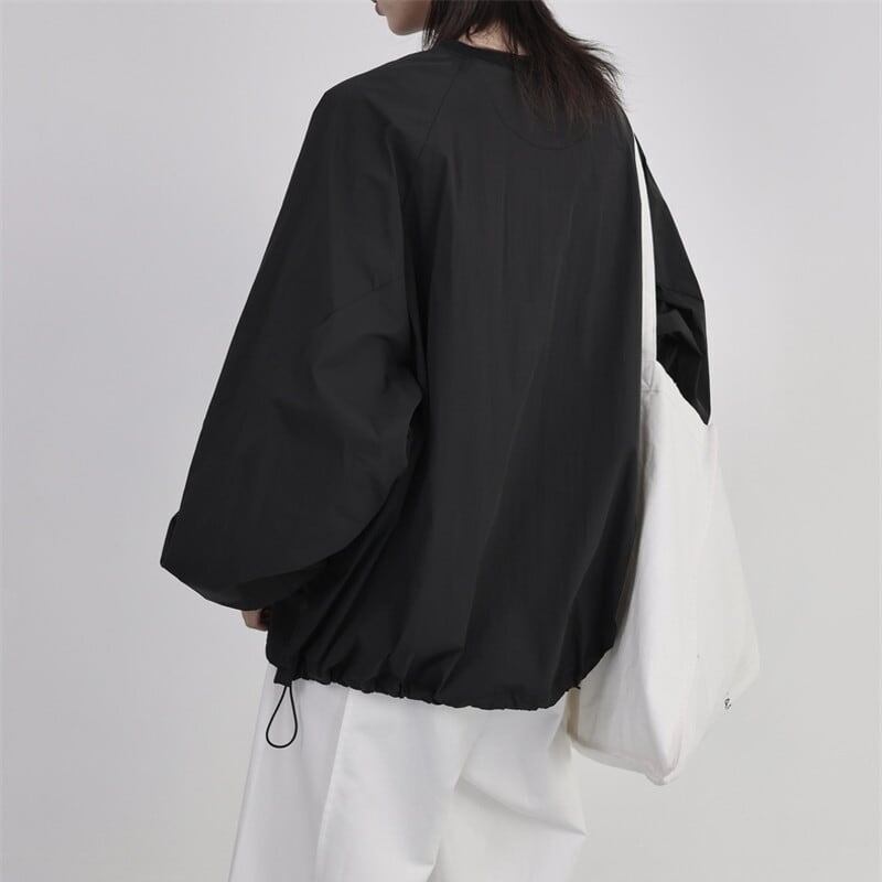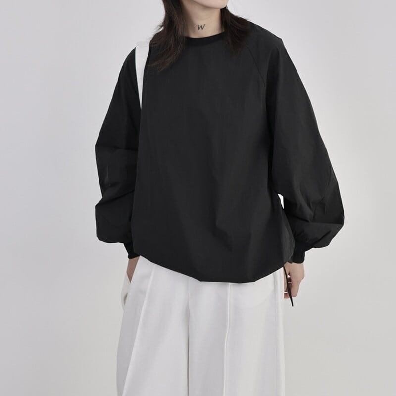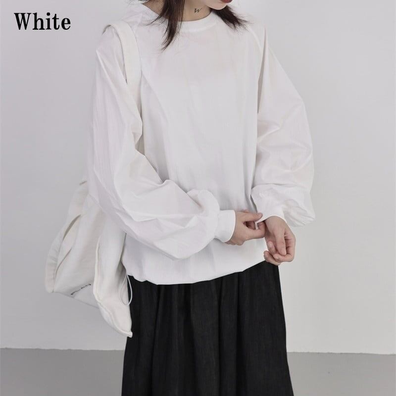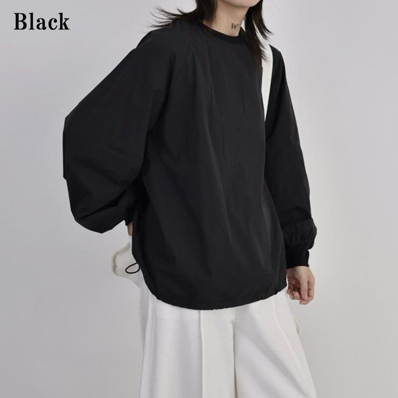Drawstring Balloon-Sleeve Collared Shirt【TR3117】