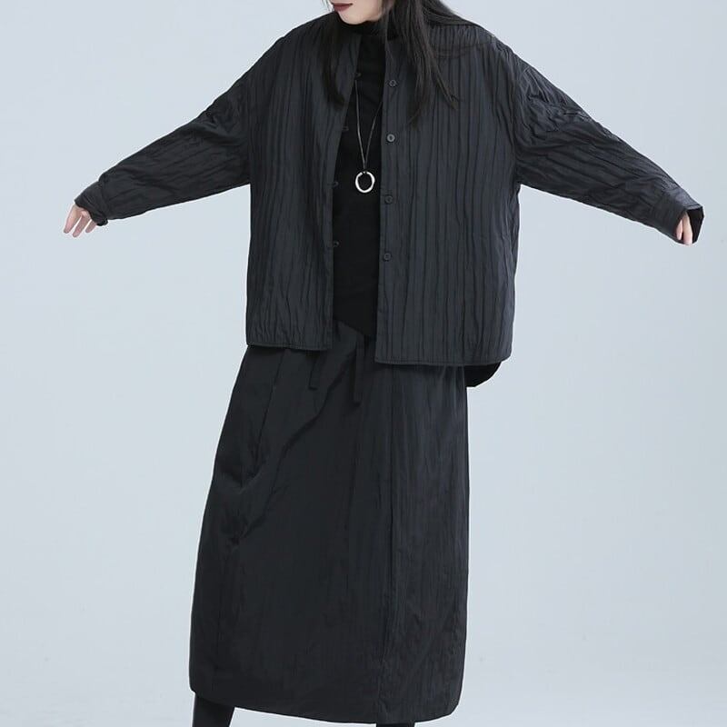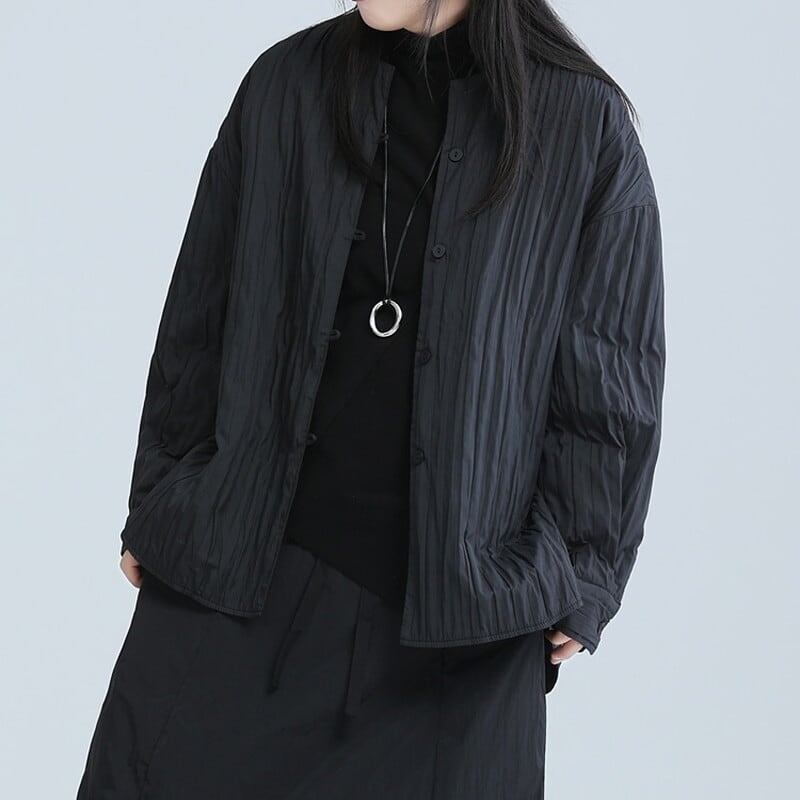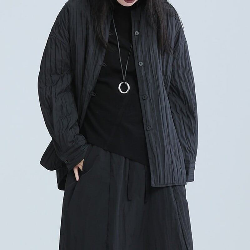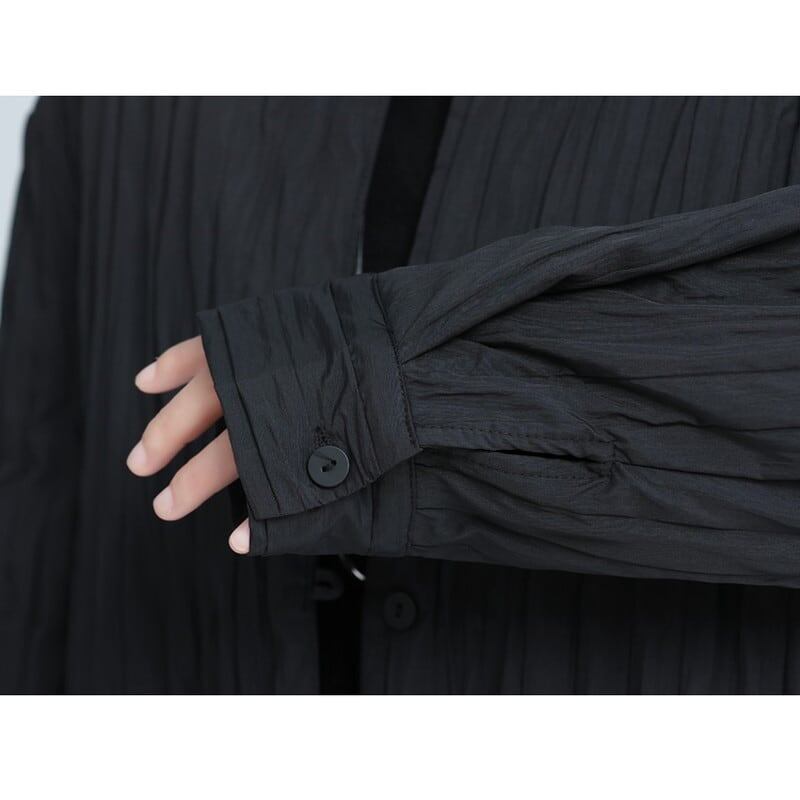 Pleats No-Collar Collared Shirt【TR3113】