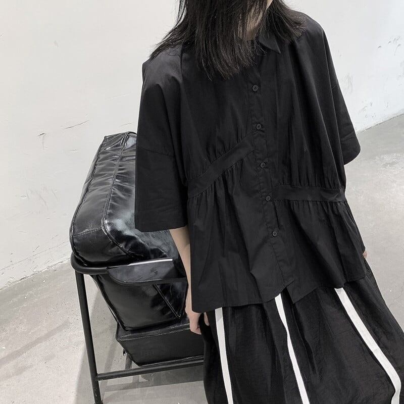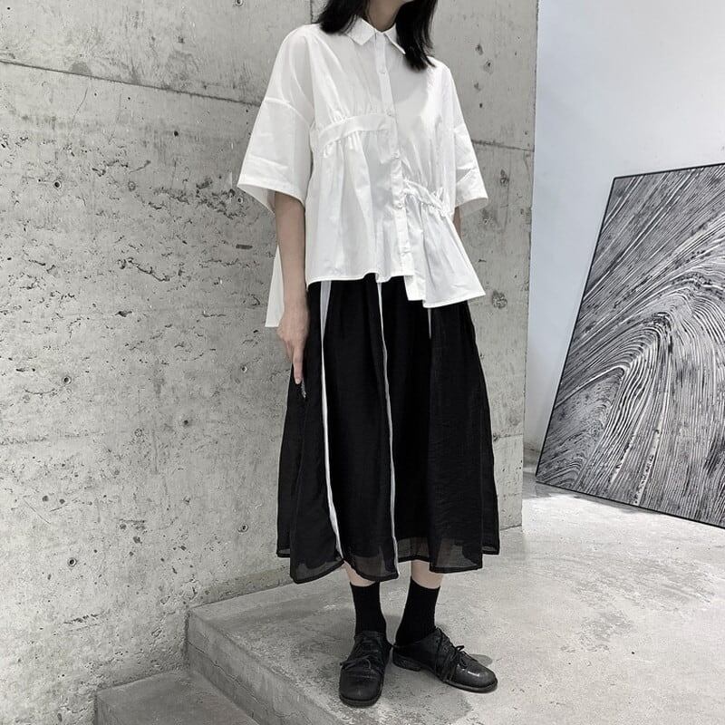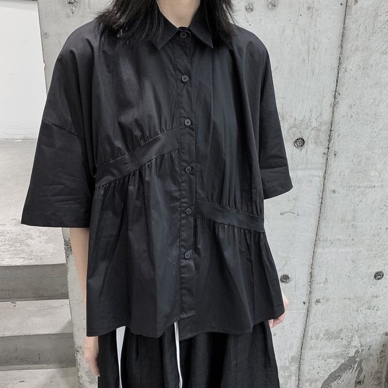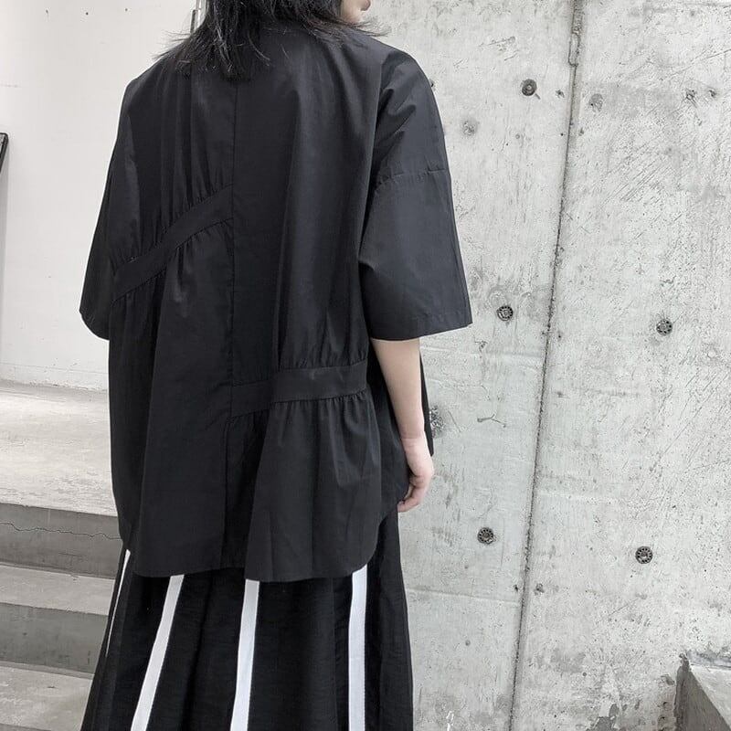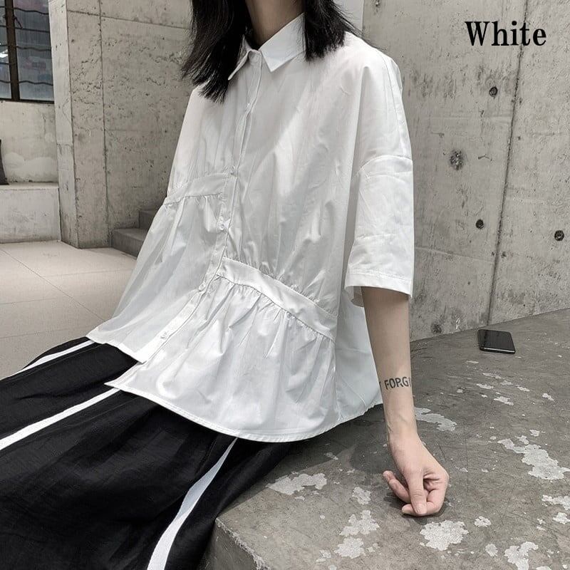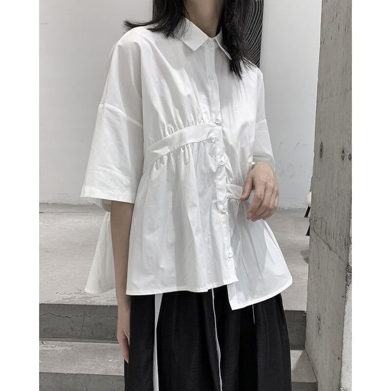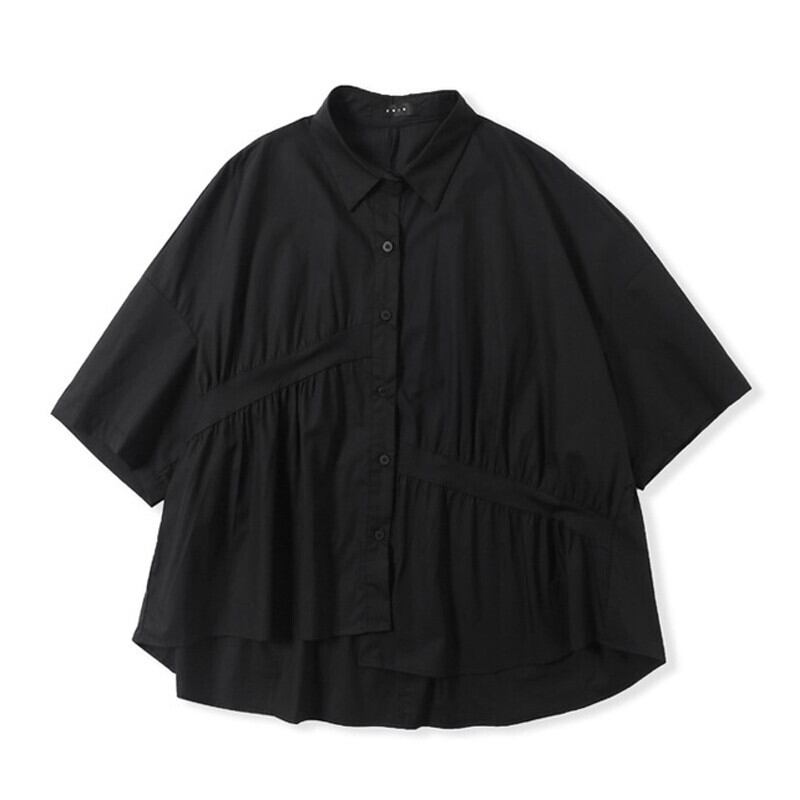 Asymmetry Gather Collared Shirt【TR3111】