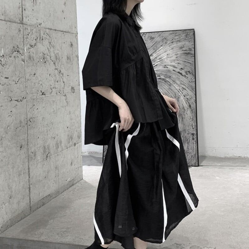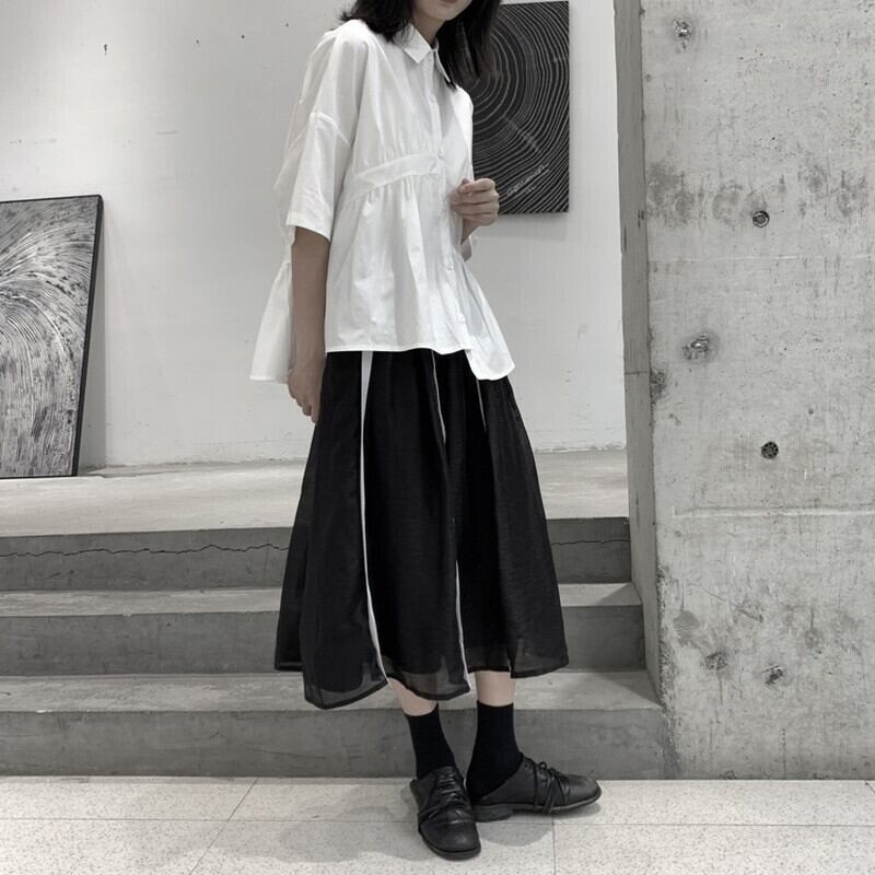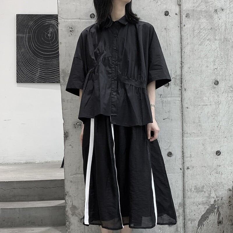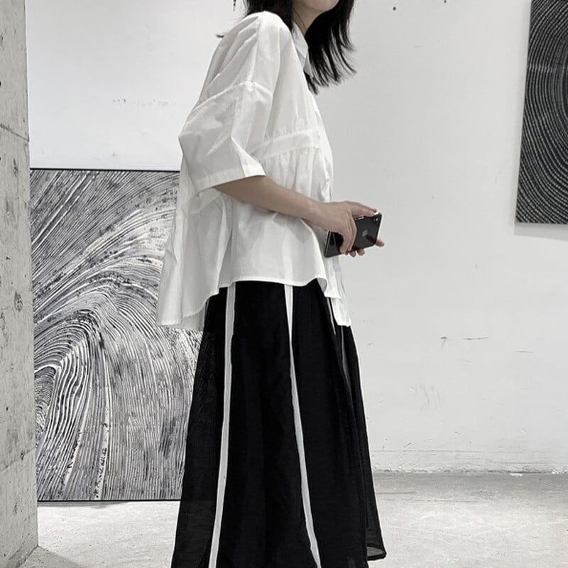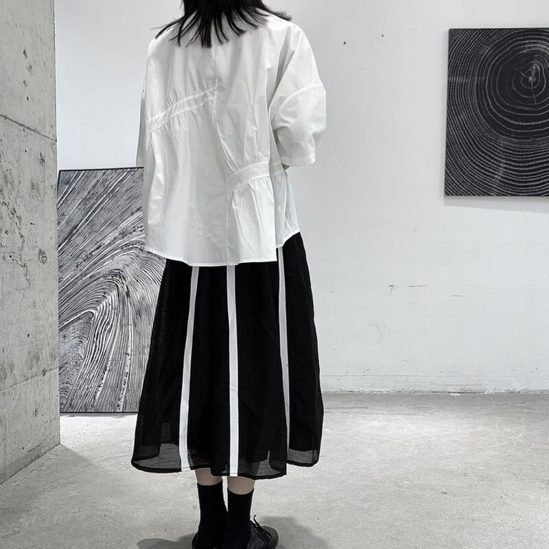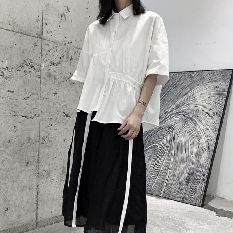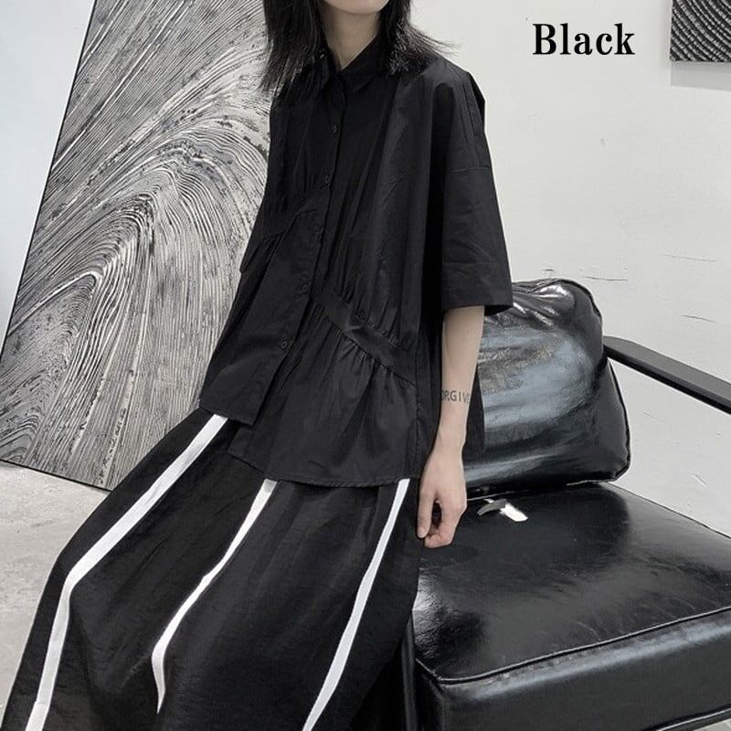 Asymmetry Gather Collared Shirt【TR3111】